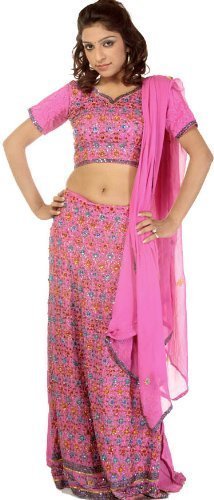 Women's Mirror and Resham work Pink color Georgette base Lehenga Choli For Women