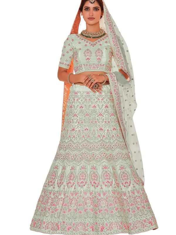 Women's Indian Traditional Pure Silk Lehenga Choli With Blouse, Color Teal Green