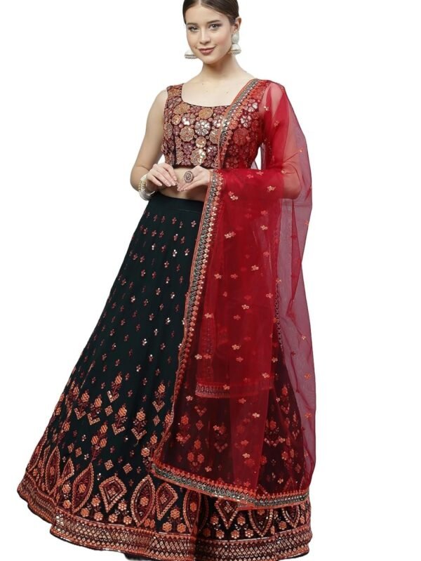 Women's Georgette Semi Stitched Lehenga Choli with Dupatta | Traditional, Wedding, Ethnic Wear Lehenga | Thread and Sequin Embroidery Pattern (Green)