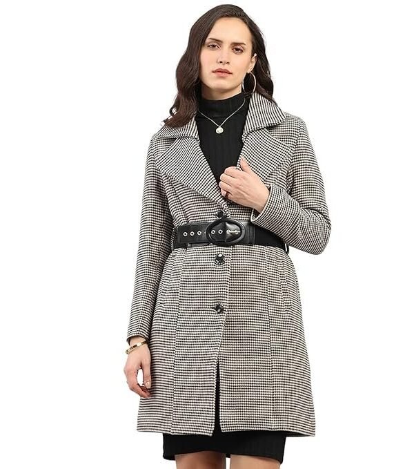 Women's Regular Fit Jacquard Lapel Collar Full Sleeve Coat| Warm Woolen Overcoat for Ladies |