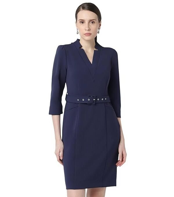 Women's Regular Fit Half Sleeve Mid Thigh Length Sheath Dress