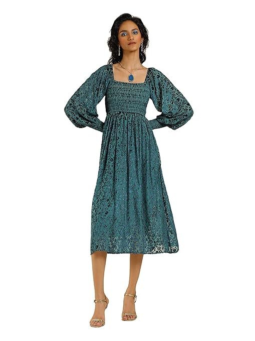 Women's Square Neck Self Designed Maxi Dress