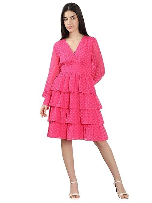 Women's Polyester Fit and Flare Knee-Length Dress