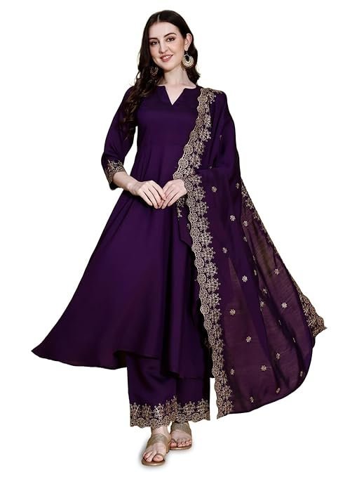 Kurta Set for Women Silk Embroidered Anarkali Kurta Set for Women with Palazzos and Dupatta