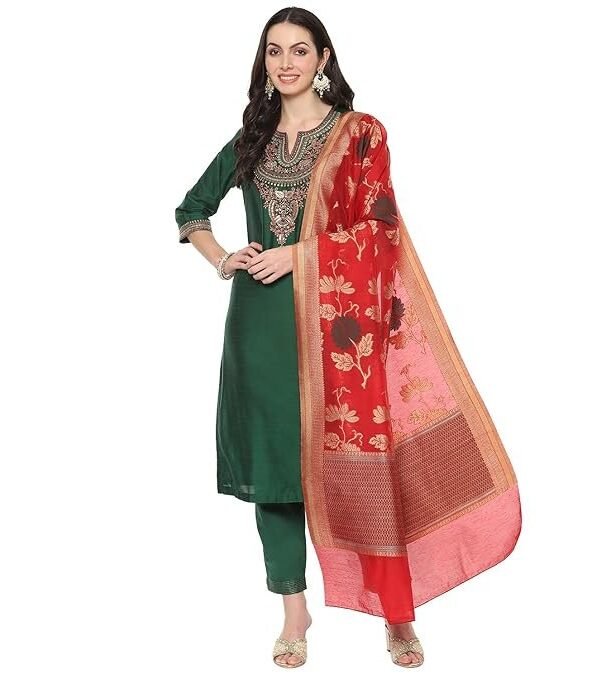 Women Embroidery Straight Kurta and Pant Set with Dupataa