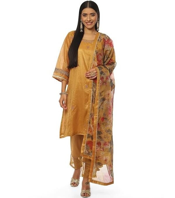 Women Art Silk Straight Kurta Slim Pants Suit Set