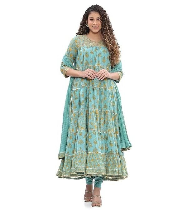 Green Floral Print Chanderi Kurta With Palazzo And Dupatta