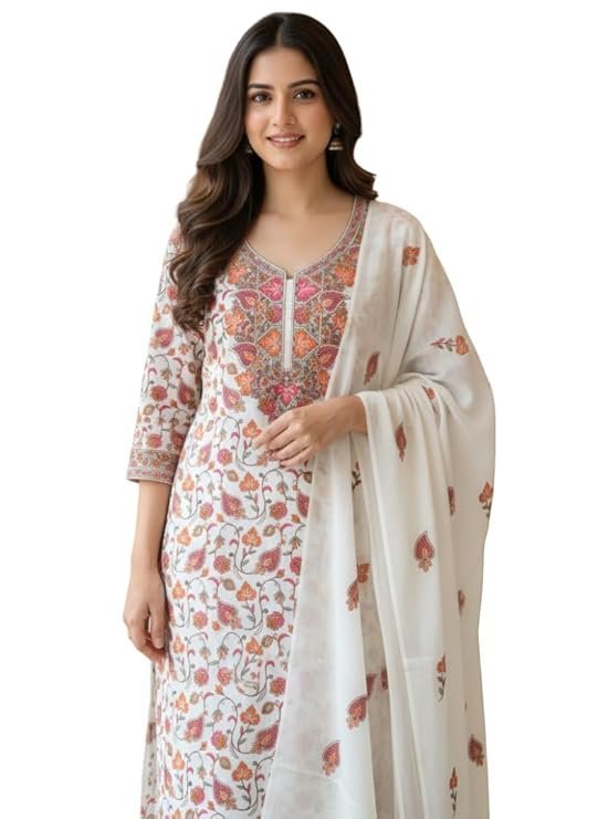 Pure Pashmina Wool Kurti Set with Dupatta Women Ethnic Suit Handwoven Soft Winter Wear Elegant Floral Design Regular Fit 3 Piece