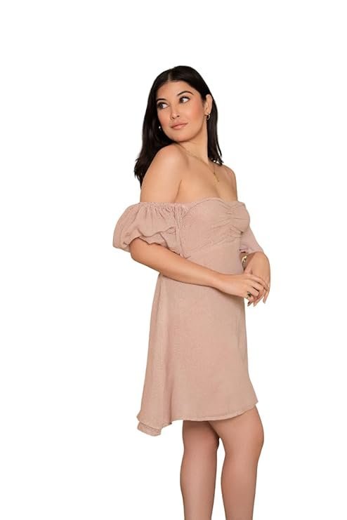 Summer Whisper Mushroom Mini Dress | Vizzy Cotton Square Neck Puff Sleeve Lightweight Women’s Outfit I We Recommend a Bigger Size for a Better fit.