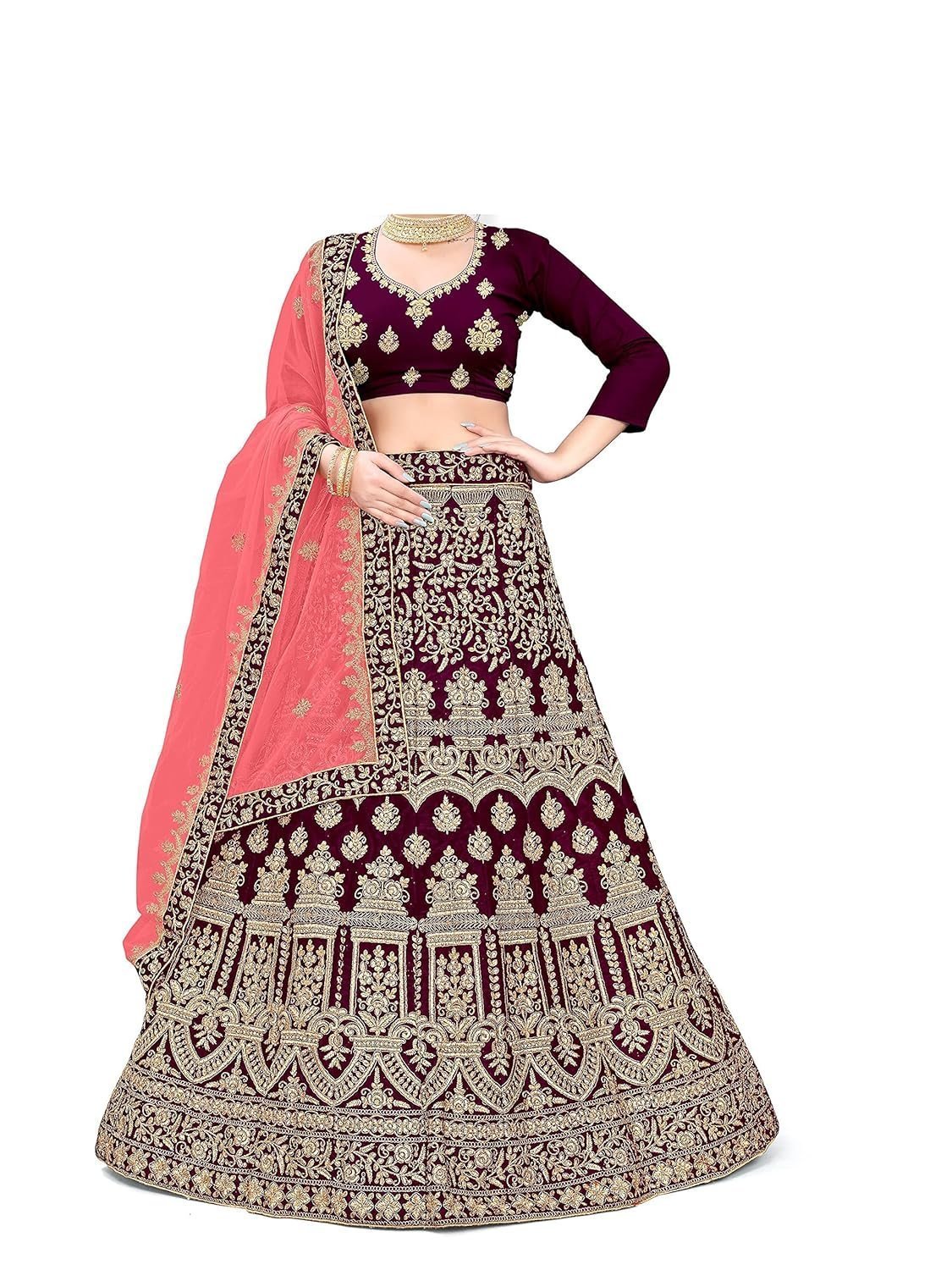- This lehenga choli is made from 9000 Velvet fabric. The lehenga choli has a beautiful contemporary design and can be worn to festive occasions or a casual occasion where you want to flaunt your style with this outfit.