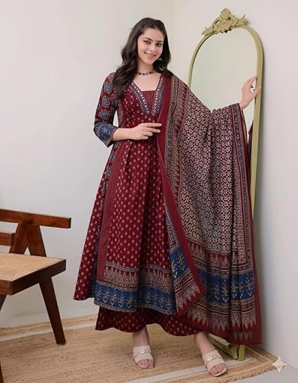 - Fit Type: Anarkali Kurta; Anarkali Kurta set for women: Anarkali Kurta Pant and printed Dupatta Set