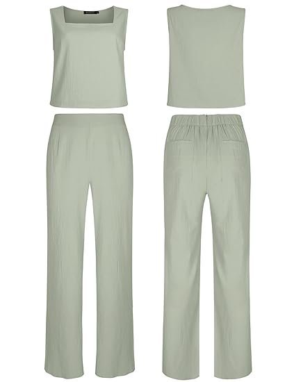 • Elegant Design: Stylish And Fashionable Design Two-Piece outfit/Sleeveless Square neckline Tops/High Waisted Wide Leg Pants /Solid Color/Back two pockets/Invisible back zipper/width shoulder straps/2 piece outfit for women/To complete the a dreamy outfit.